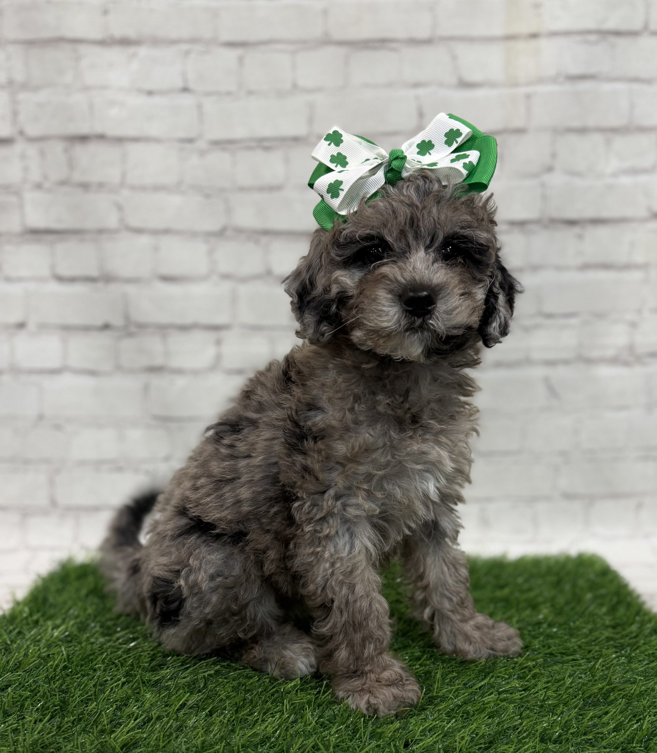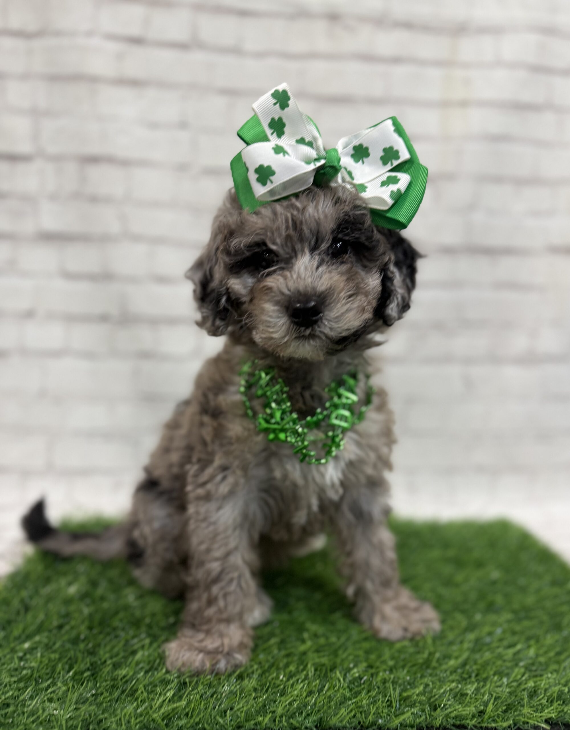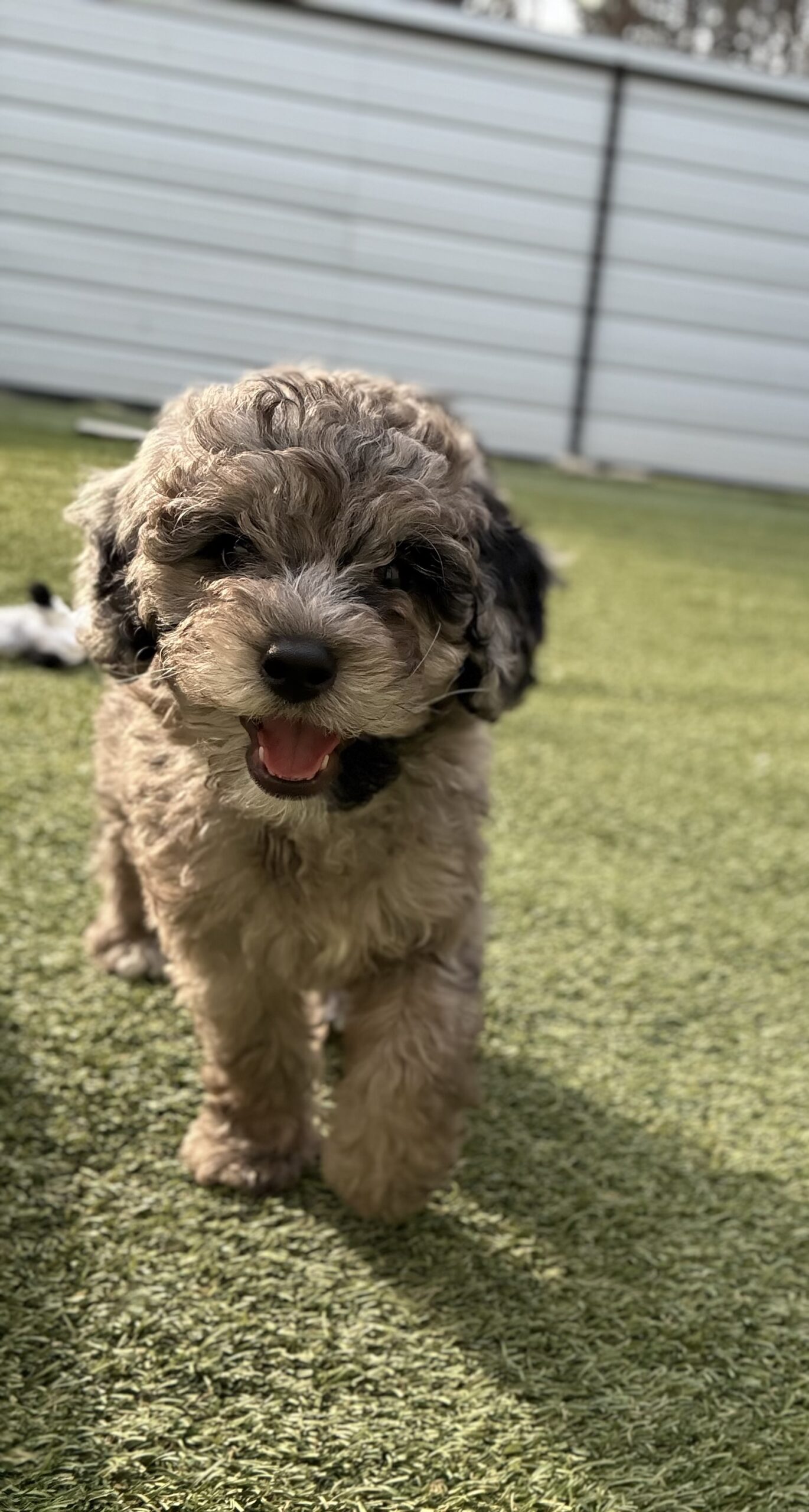 You must meet Londyn? She is a merle phantom abstract female Mini Poodle with a natural tail, thoughtfully raised with early care and intention.