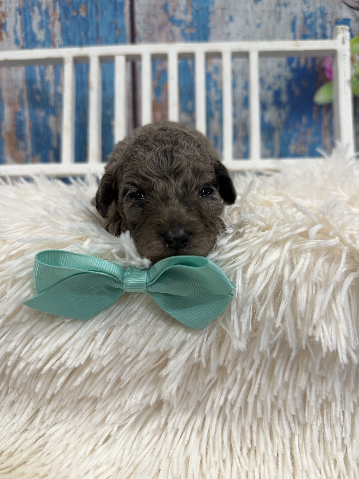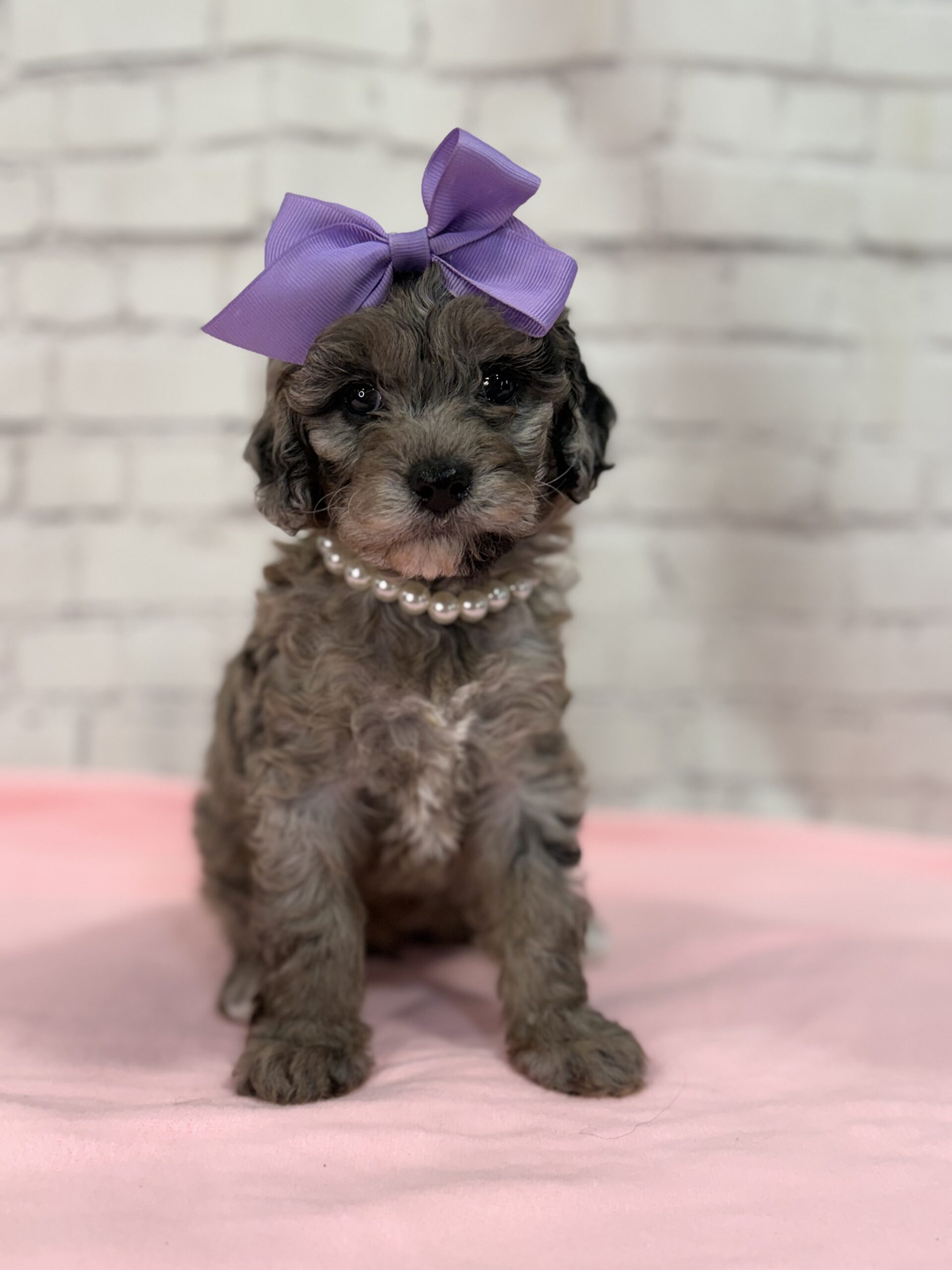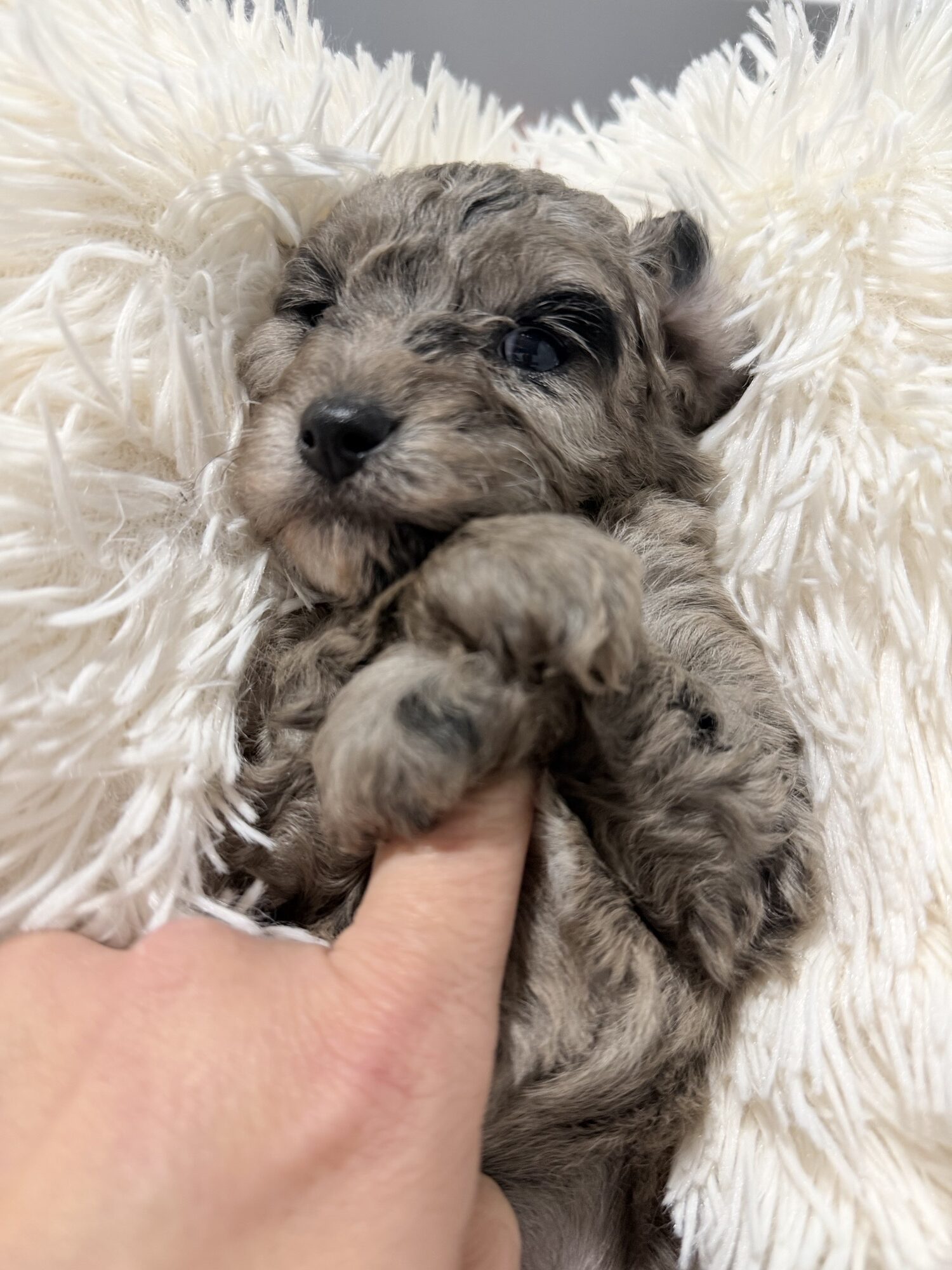 You must meet Londyn? She is a merle phantom abstract female Mini Poodle with a natural tail, thoughtfully raised with early care and intention.