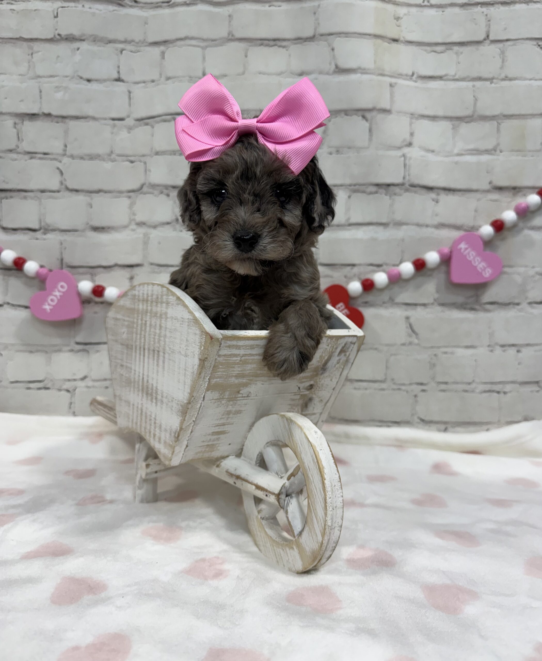 Mini Poodles are known for their exceptional intelligence, trainability, and devoted personalities, making them wonderful companions for both families and individuals. This girl is being raised with hands-on socialization and enrichment to support her natural confidence and connection to people.
