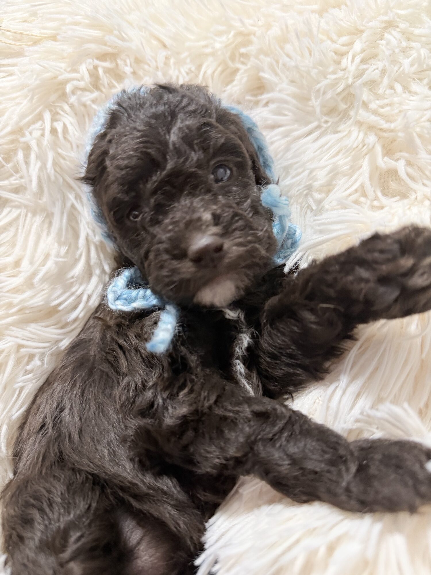 Tate is apricot parti weighs around 14 pounds and it’s genetically it’s cleared. Tate is very sweet but is always up for an adventure.