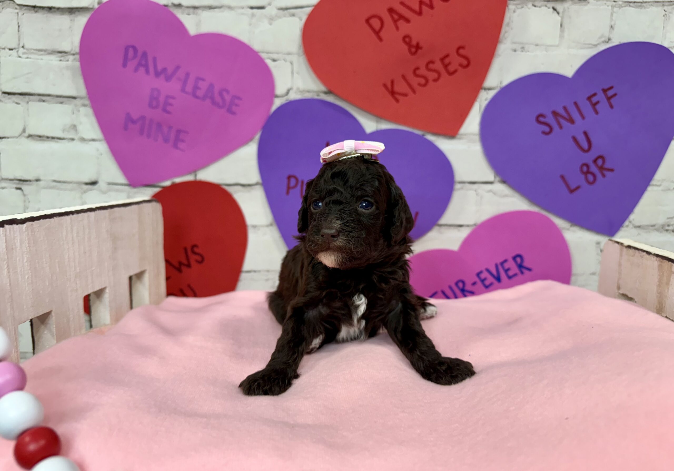 Introducing a truly stunning chocolate abstract female Mini Poodle, born December 28, 2025, and thoughtfully raised with intention, care, and early developmental enrichment.