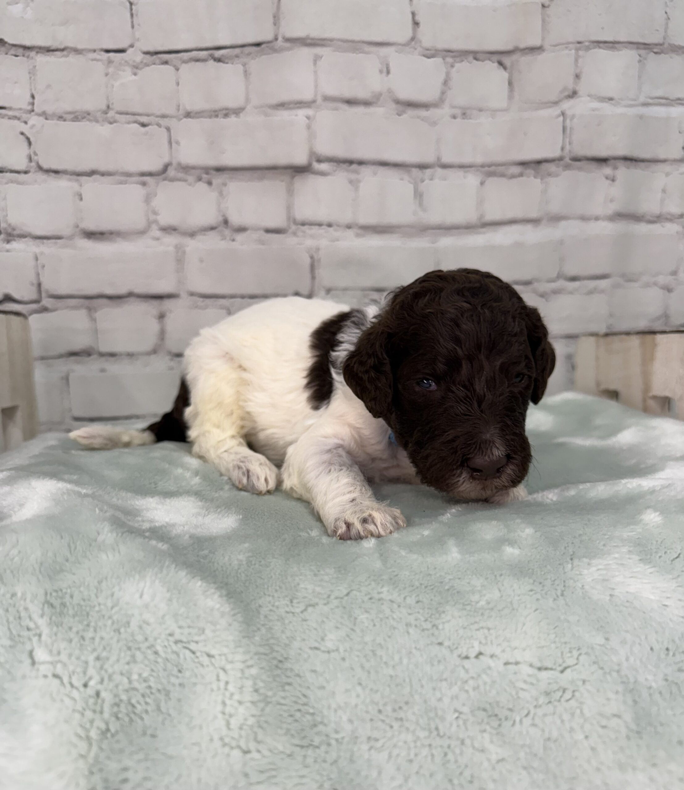 Oakley is a gorgeous chocolate parti with a steady, affectionate temperament and a confident, people-loving personality. She brings strong structure, intelligence, and a beautiful curly coat to this litter. Oakley is genetically clear through Embark and represents the consistency you’ve come to expect from your established Shepadoodle program.