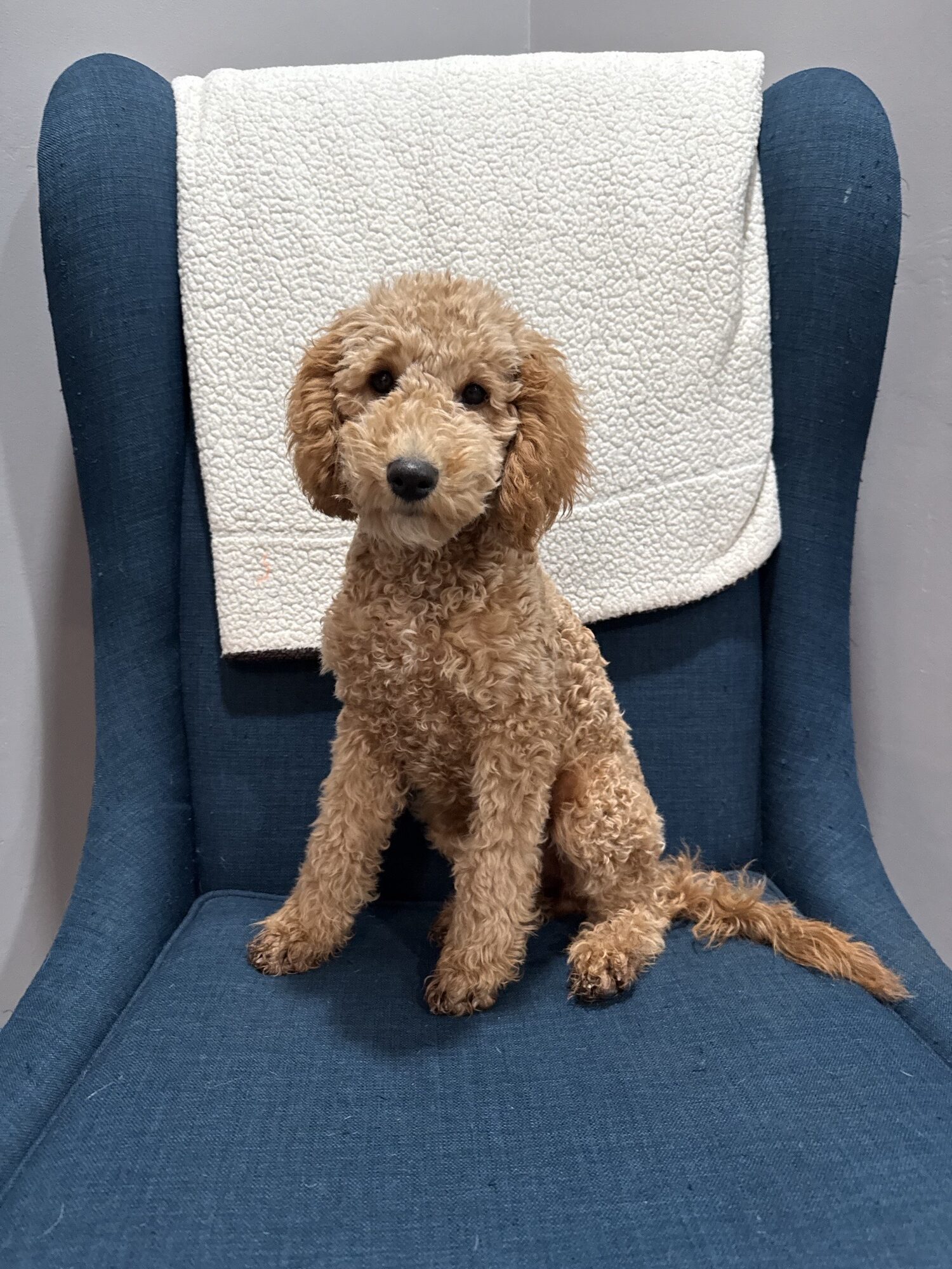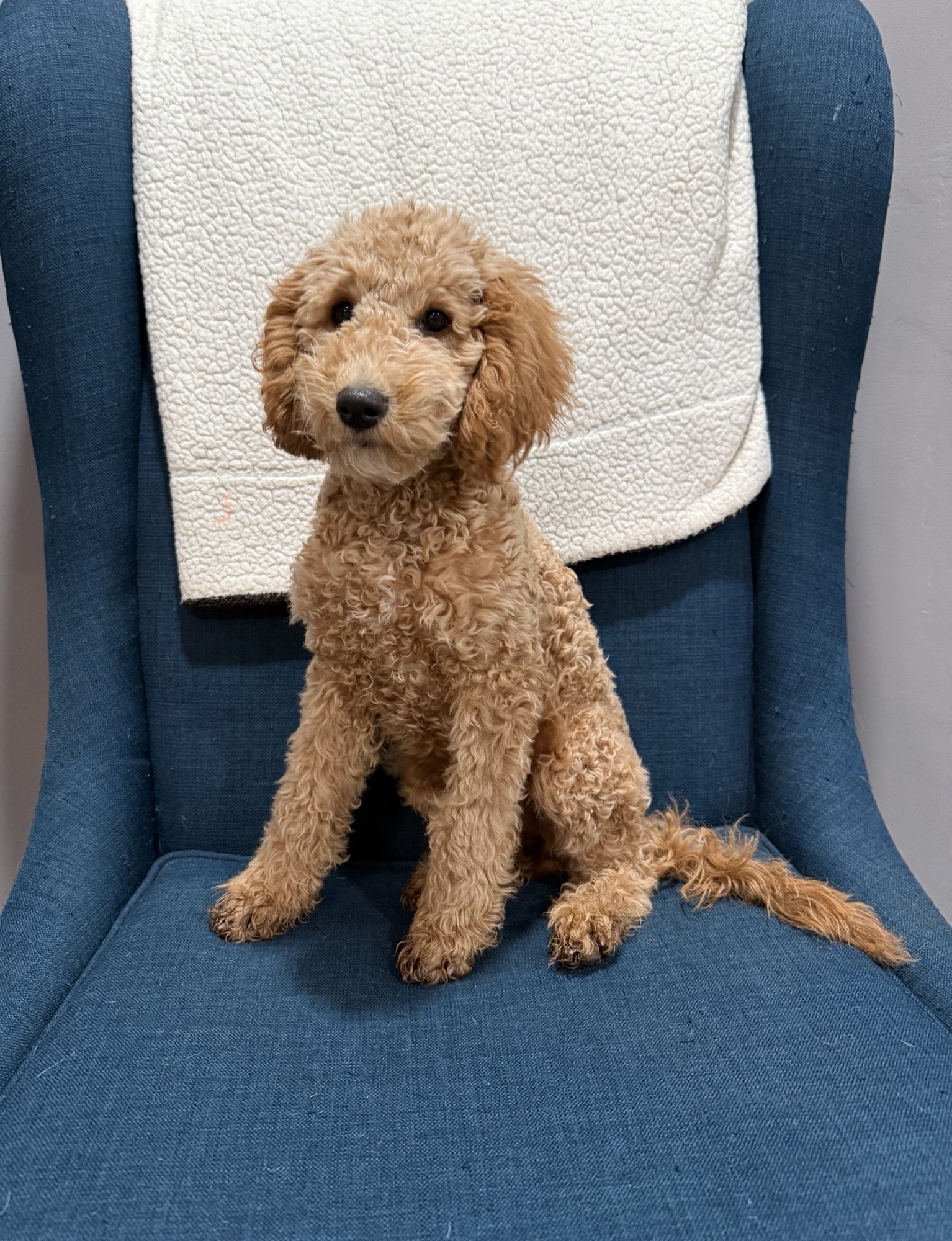 Ginger is a 17-week-old red Mini Poodle with a heart as sweet as her coloring. She is mostly potty and crate trained and is doing wonderfully with her puppy manners. Ginger gets along great with other dogs and regularly joins in on doggy daycare, where she loves to play and socialize.