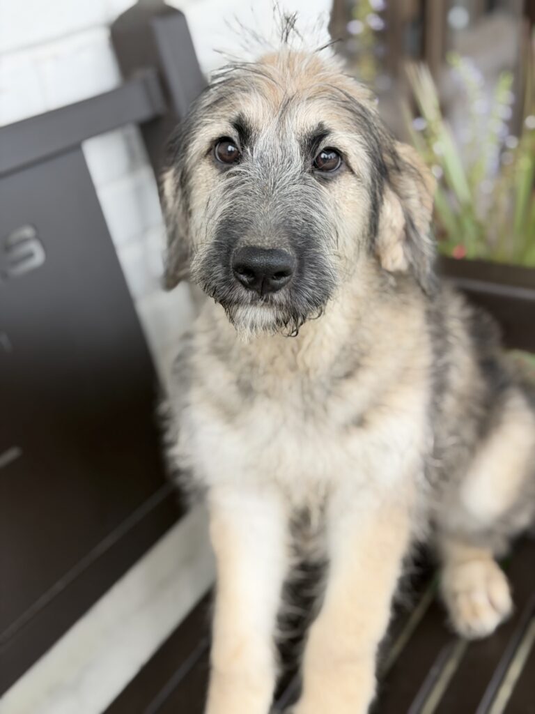 Our beautiful F1 Shepadoodles are the best of both worlds—combining the loyalty and trainability of the German Shepherd with the intelligence and hypoallergenic qualities of the Poodle.