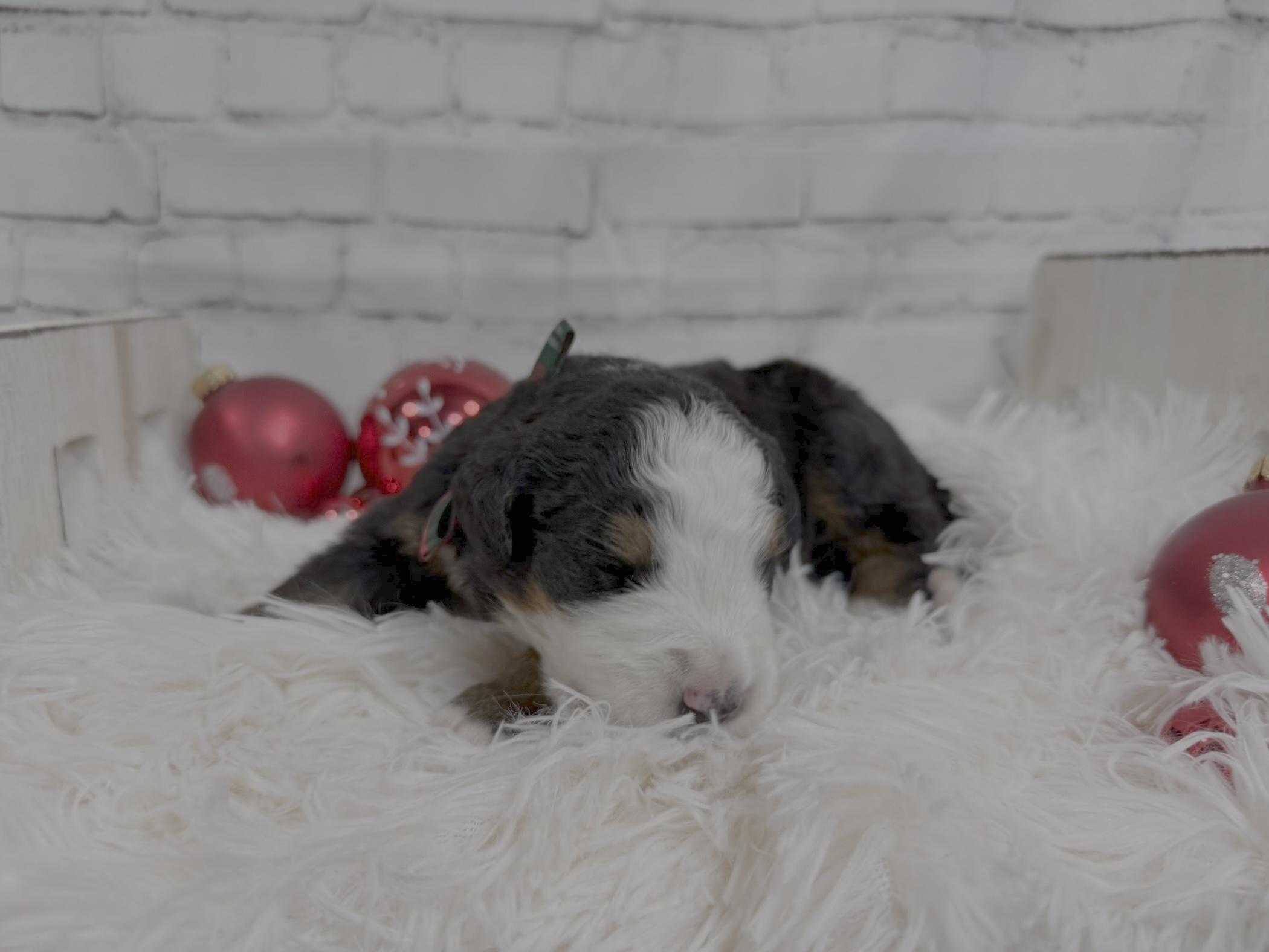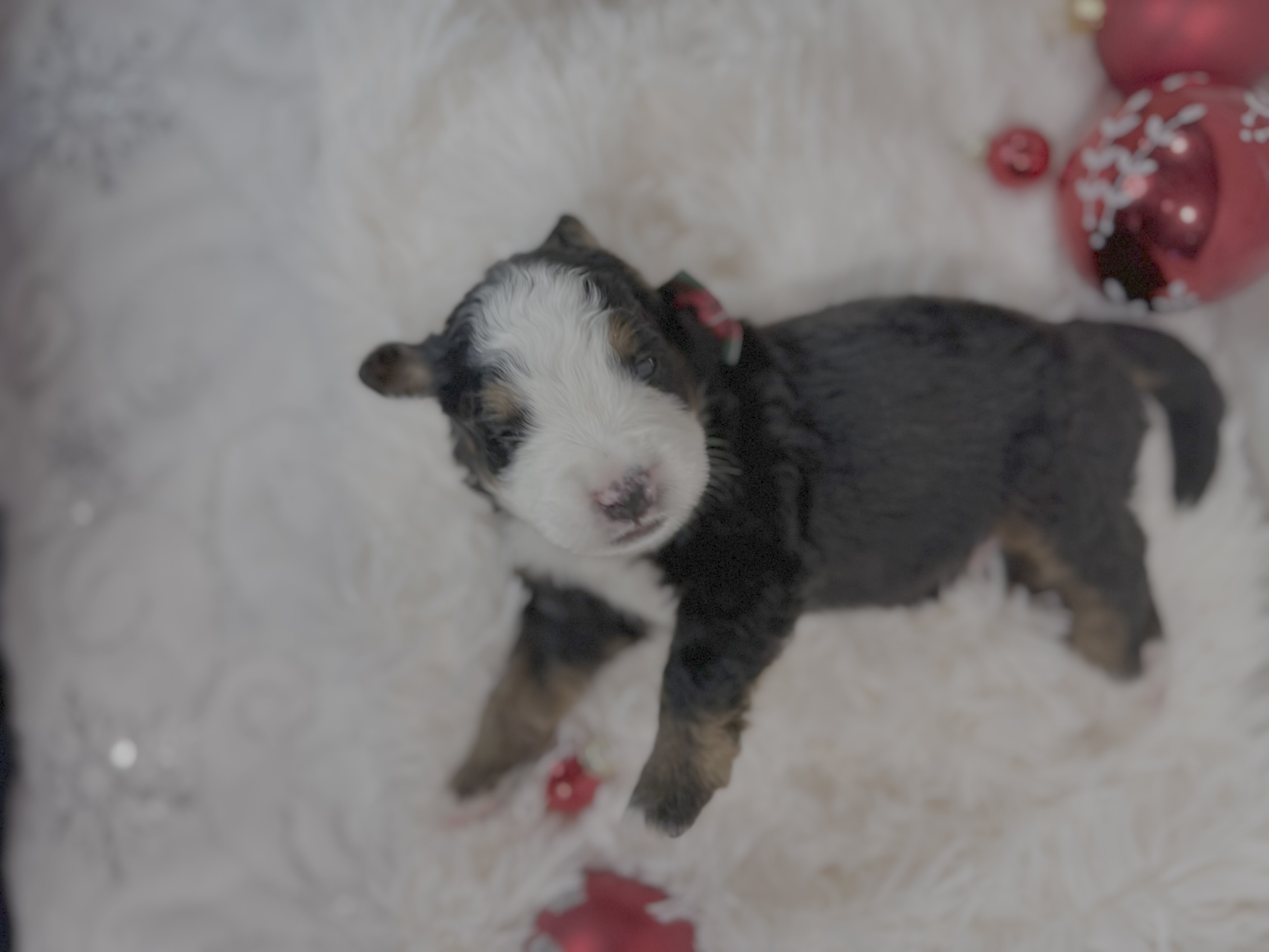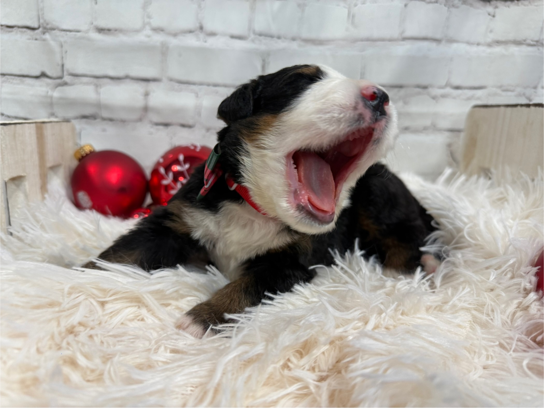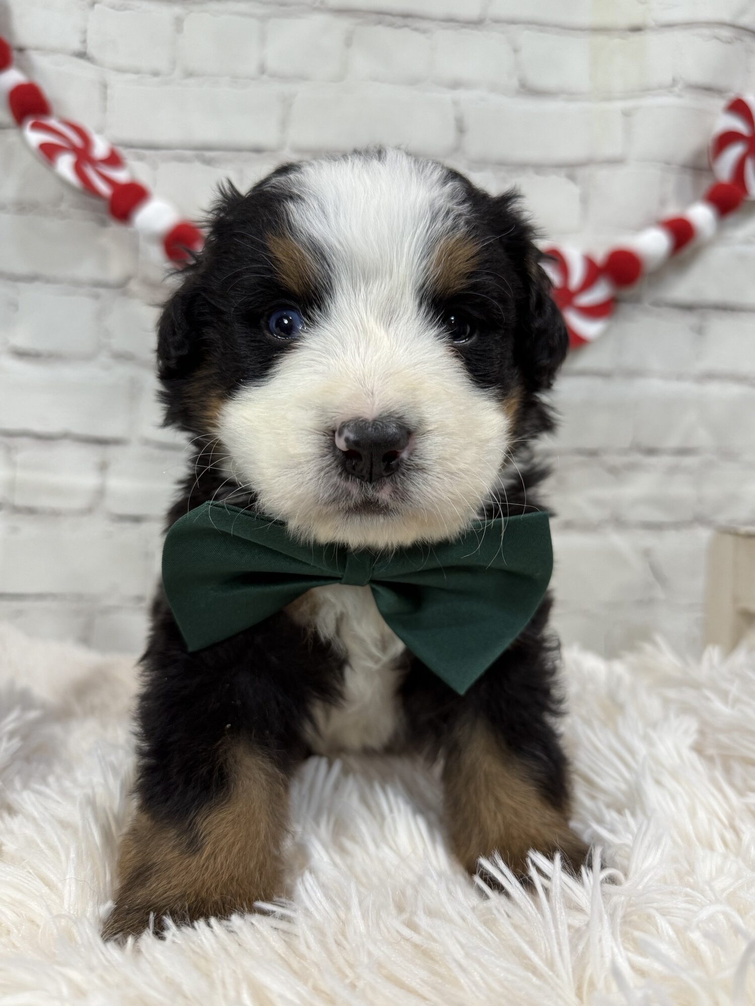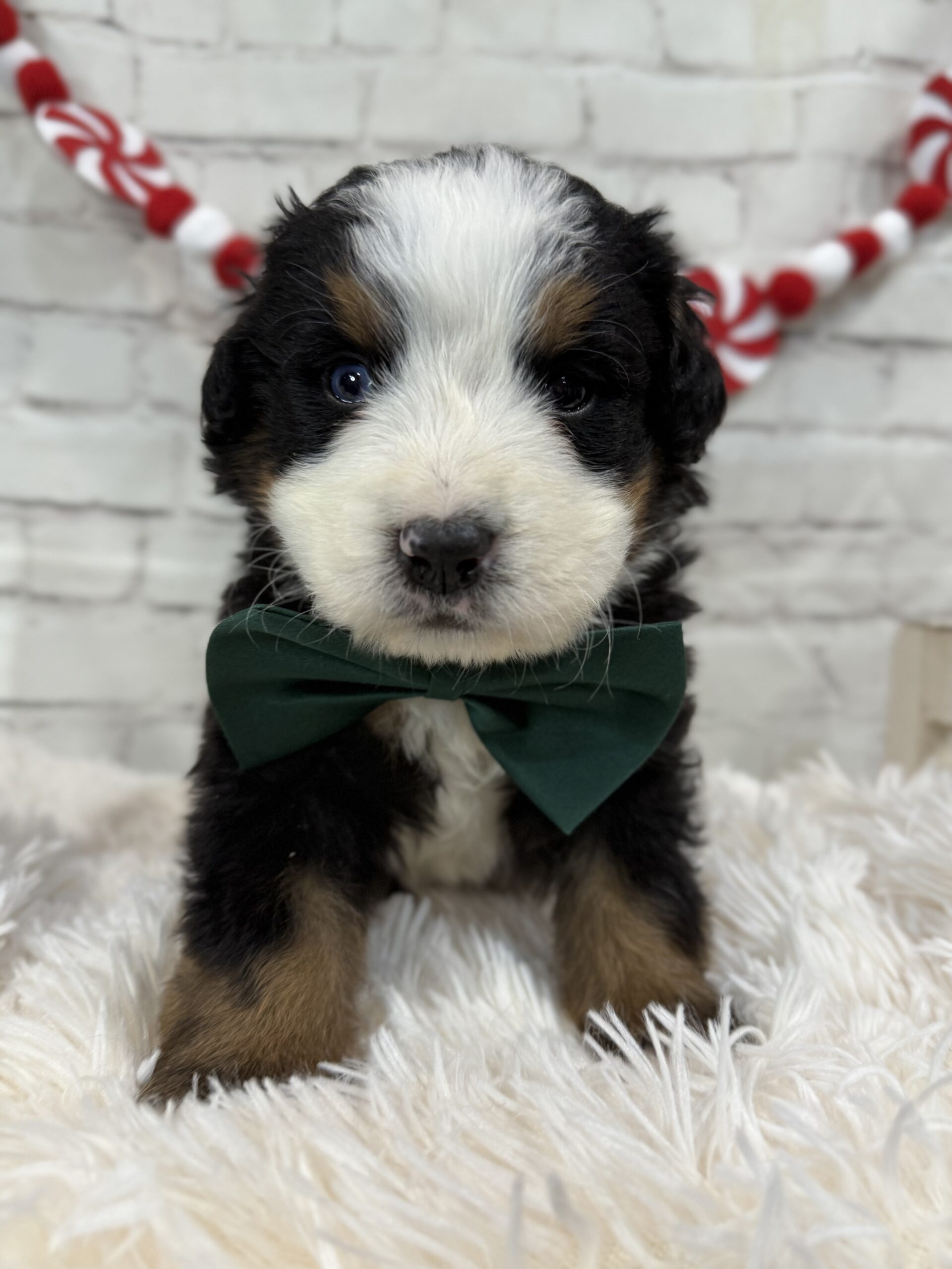 Meet Kobi, a beautiful Bernese Mountain Dog from Bella Mae and Samson . While all the pups from this litter has a calm and loving temperament Kobi has been one of the smaller of the litter and loves to cuddle. He will also have one blue eye. All pups are off to a great start thanks to our enriched early-life program.