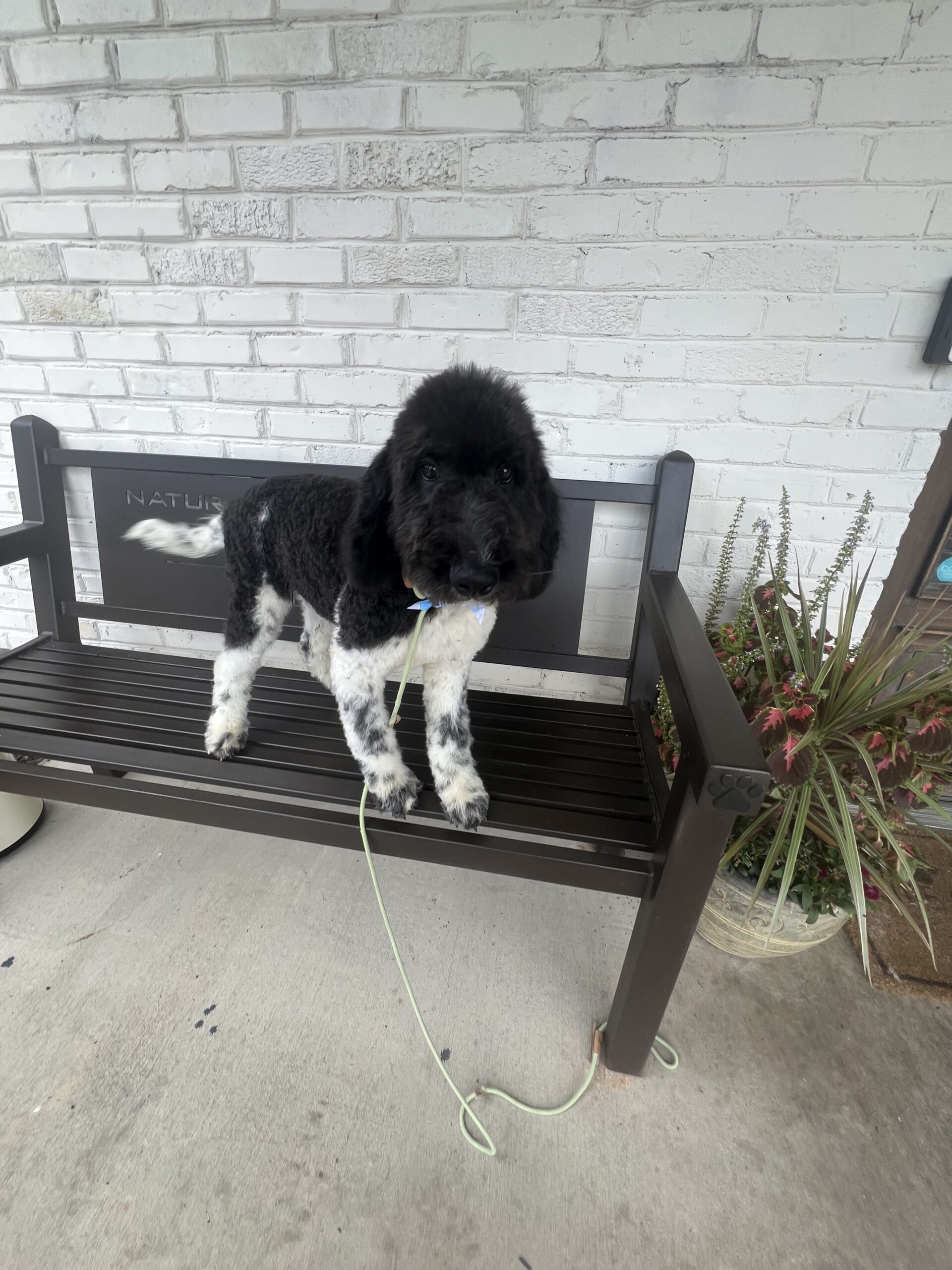 Looking for a confident, well-socialized companion or potential service dog? Our stunning tri-color medium F1b Bernedoodle is ready to join the right family!