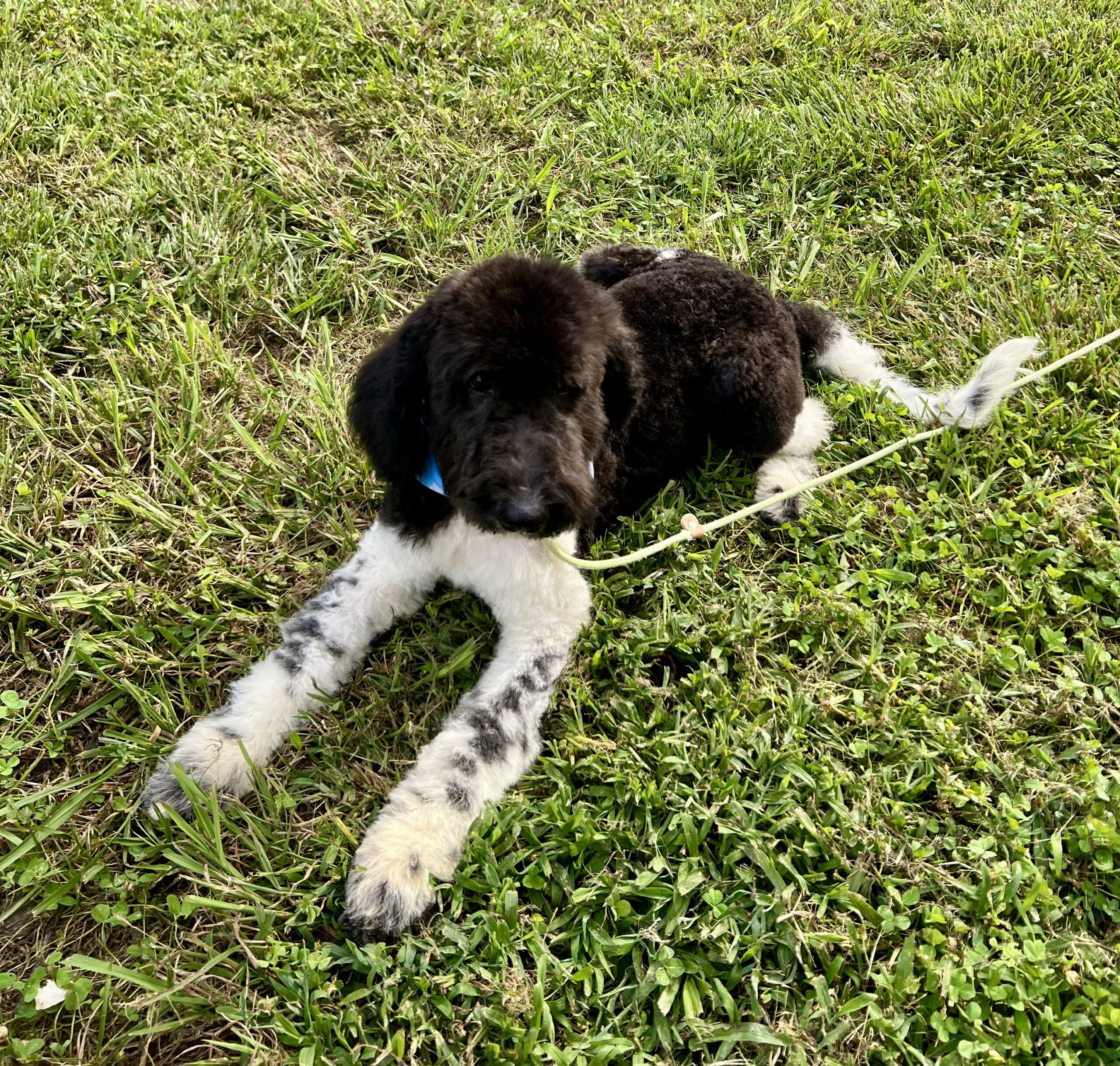 Dad: 45 lb tri-color merle AKC Small Standard Poodle