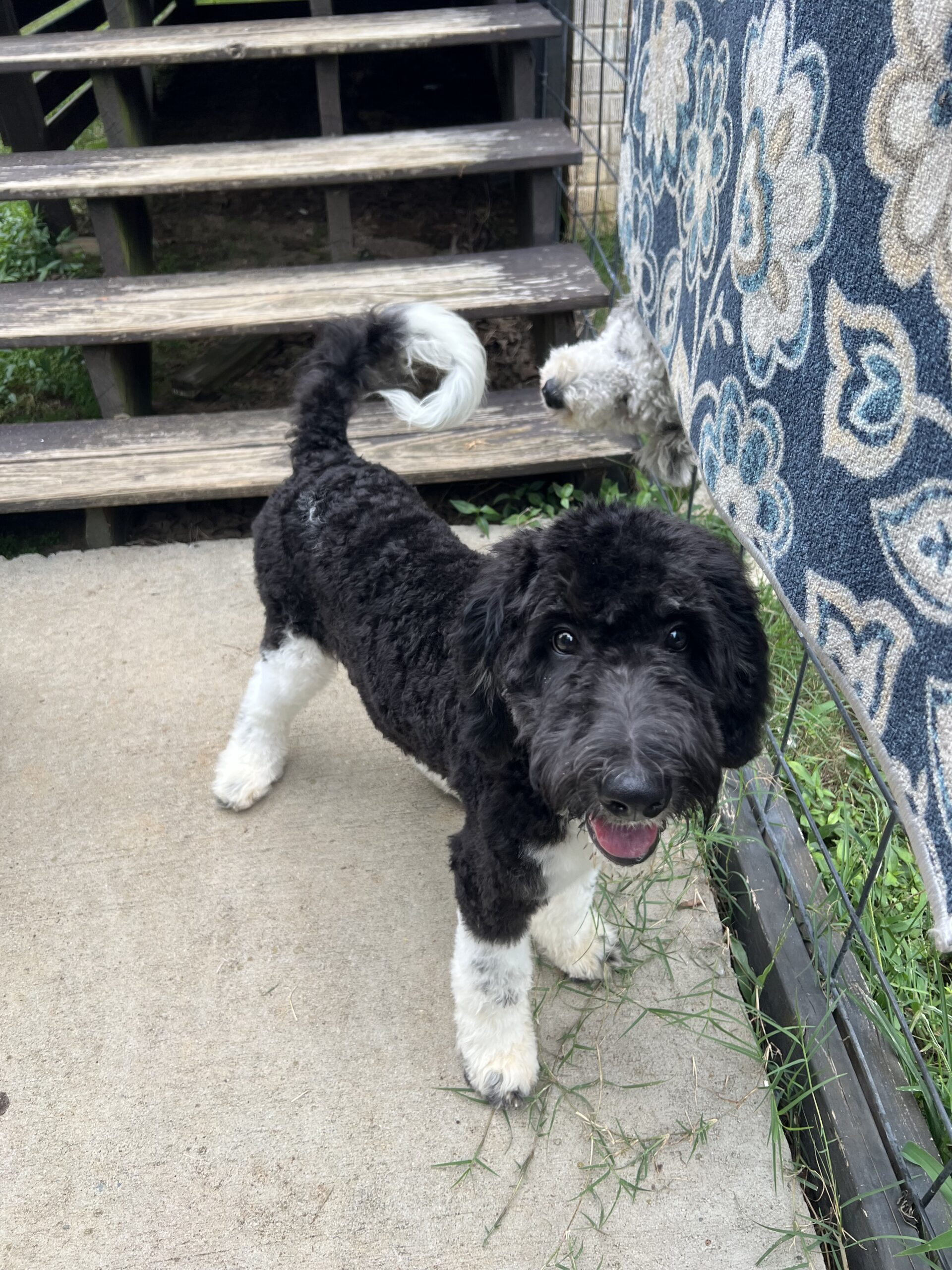 Looking for a confident, well-socialized companion or potential service dog? Our stunning tri-color medium F1b Bernedoodle is ready to join the right family!